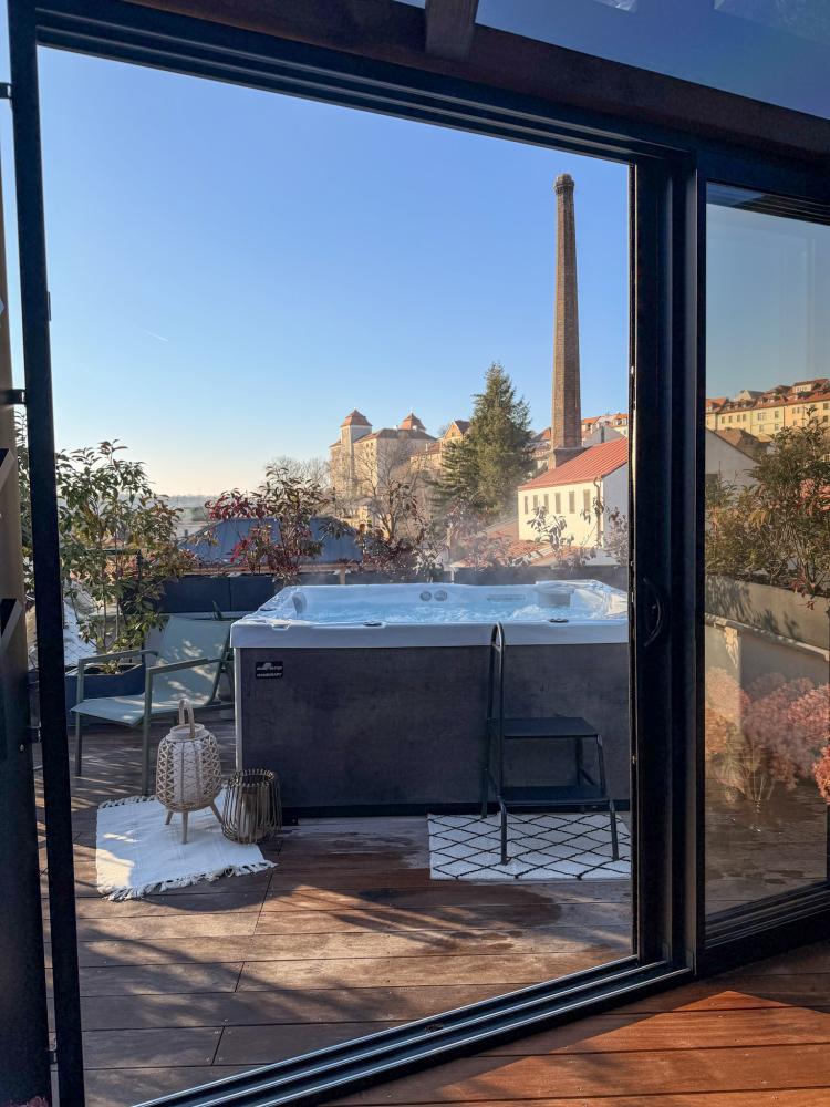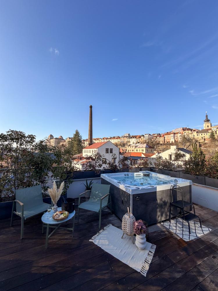 Apartmán Pivovar nabízí luxusní ubytování s privátním střešním wellness & spa a prostornou terasou s výhledem na pivovar a Mladoboleslavský hrad. Užijte si absolutní pohodlí a relaxaci v exkluzivním prostředí, které kombinuje prvotřídní vybavení a dechberoucí panorama. K dispozici je neomezený vstup do privátního střešního wellness by Hanscraft s finskou saunou Quadra X, podsvícenou vířivkou OKA, ochlazovací kádí a romantickou