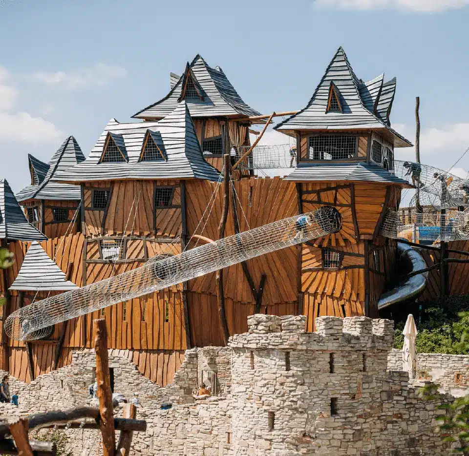 Na ploše deseti hektarů dětských atrakcí spolu sousedí vodní svět, lanové centrum, lesní městečko, pohádková vesnička, majestátní dřevěný hrad, tajné podzemní chodby, spletité bludiště, malá zoo, houpačky, trampolíny a mnoho dalšího a to jen 25 km od nás.