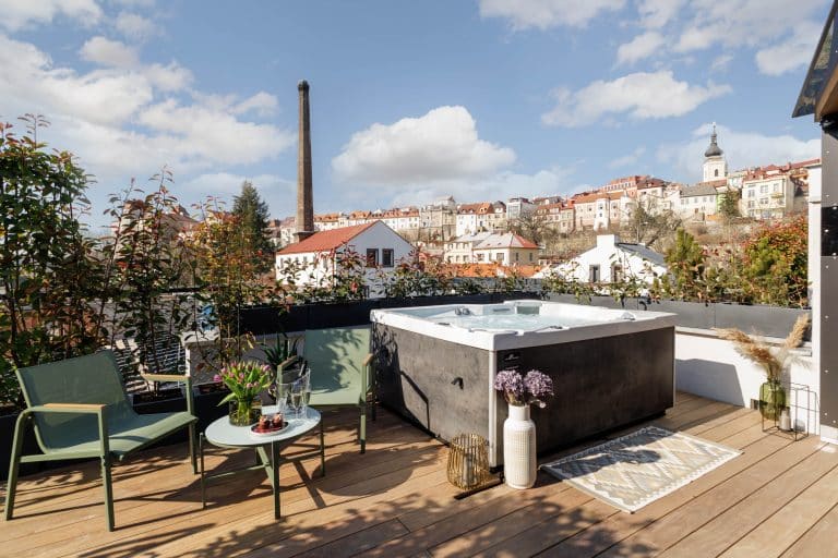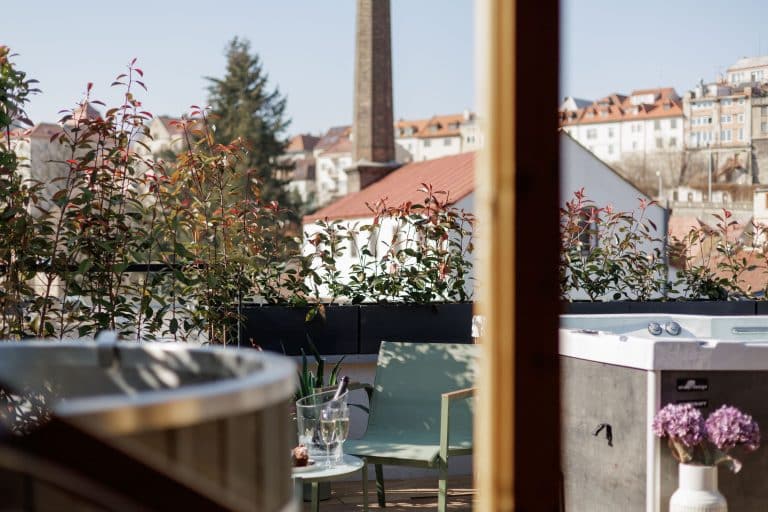 Apartmán Pivovar nabízí luxusní ubytování s privátním střešním wellness & spa a prostornou terasou s výhledem přímo na eMBe pivovar a Mladoboleslavský hrad.