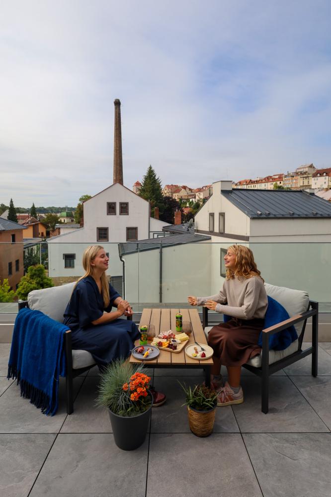Geniessen Sie luxuriöse Unterkünfte, einen privaten Dachterrassen-Wellnessbereich mit atemberaubendem Blick auf die Burg von Jungbunzlau und ein königliches Frühstück.