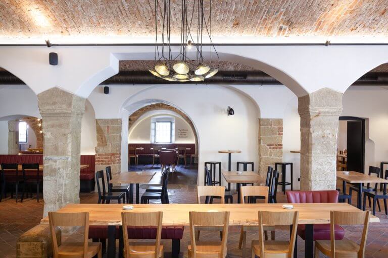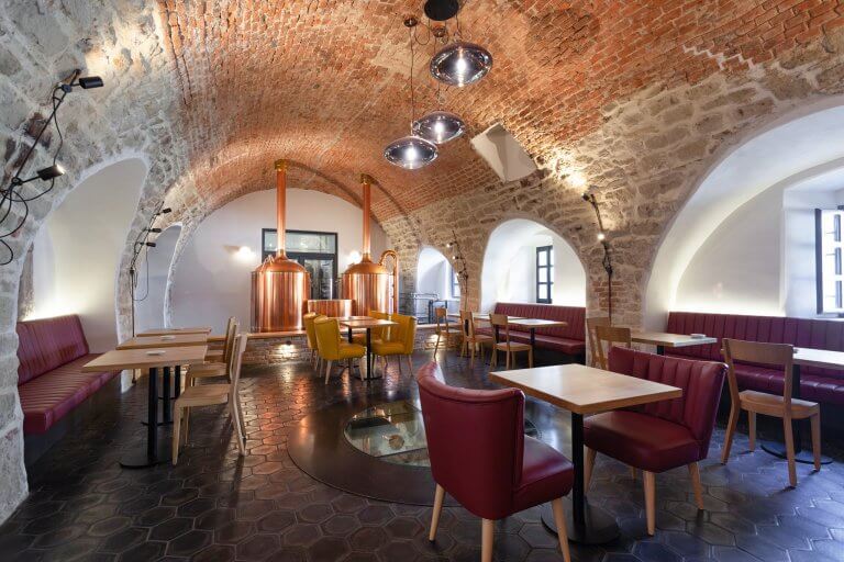 The beautiful interior of the former malt house is the ideal place for a work lunch, a get-together with friends or a quick refreshment after a bike ride. Try an unfiltered beer made with unique local water, the highest quality malts and hops, and most importantly, a love for the craft of brewing. The best selling pale lager is complemented by regular specials.