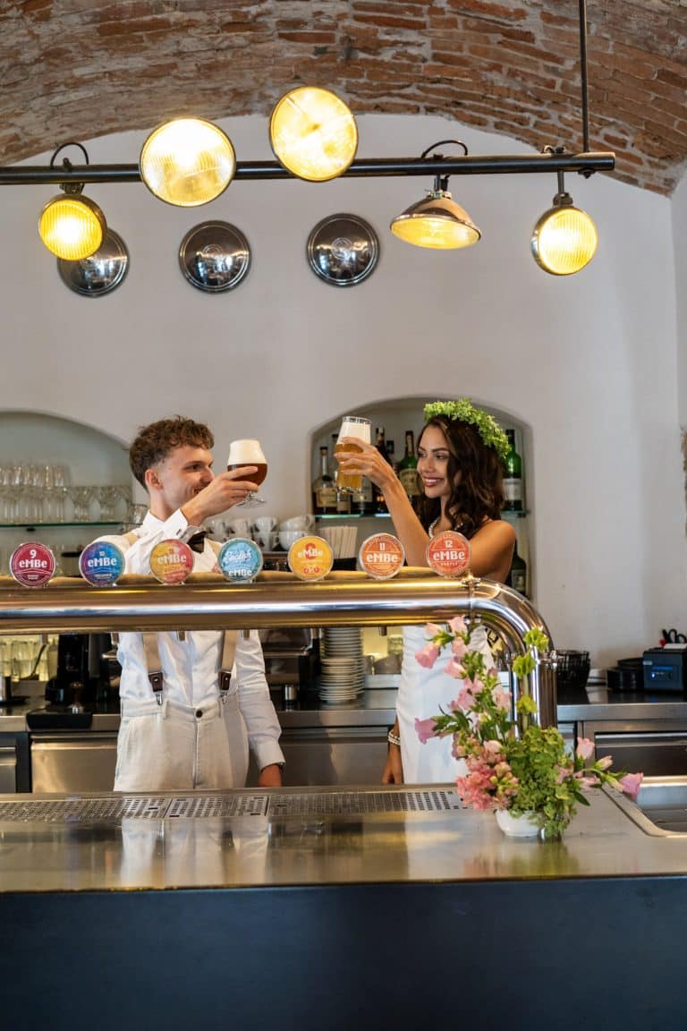 We offer stylish accommodation for up to 70 guests, a wedding apartment with a private rooftop wellness, and romantic spots for an outdoor ceremony. The neighboring eMBe Brewery will take care of your wedding feast and professional catering, with a capacity of up to 150 people.